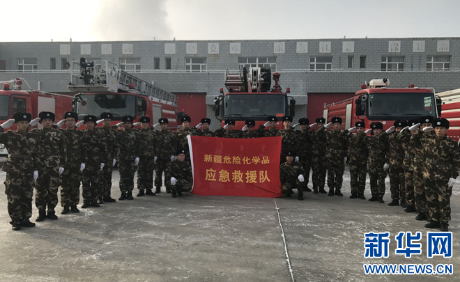 新疆油田公司消防支队部分消防员合影。新华网于子茹 摄