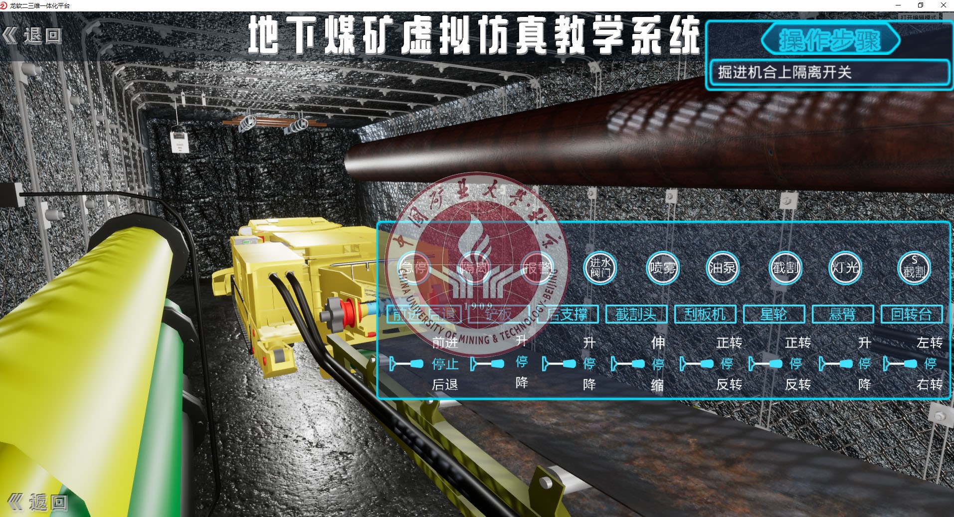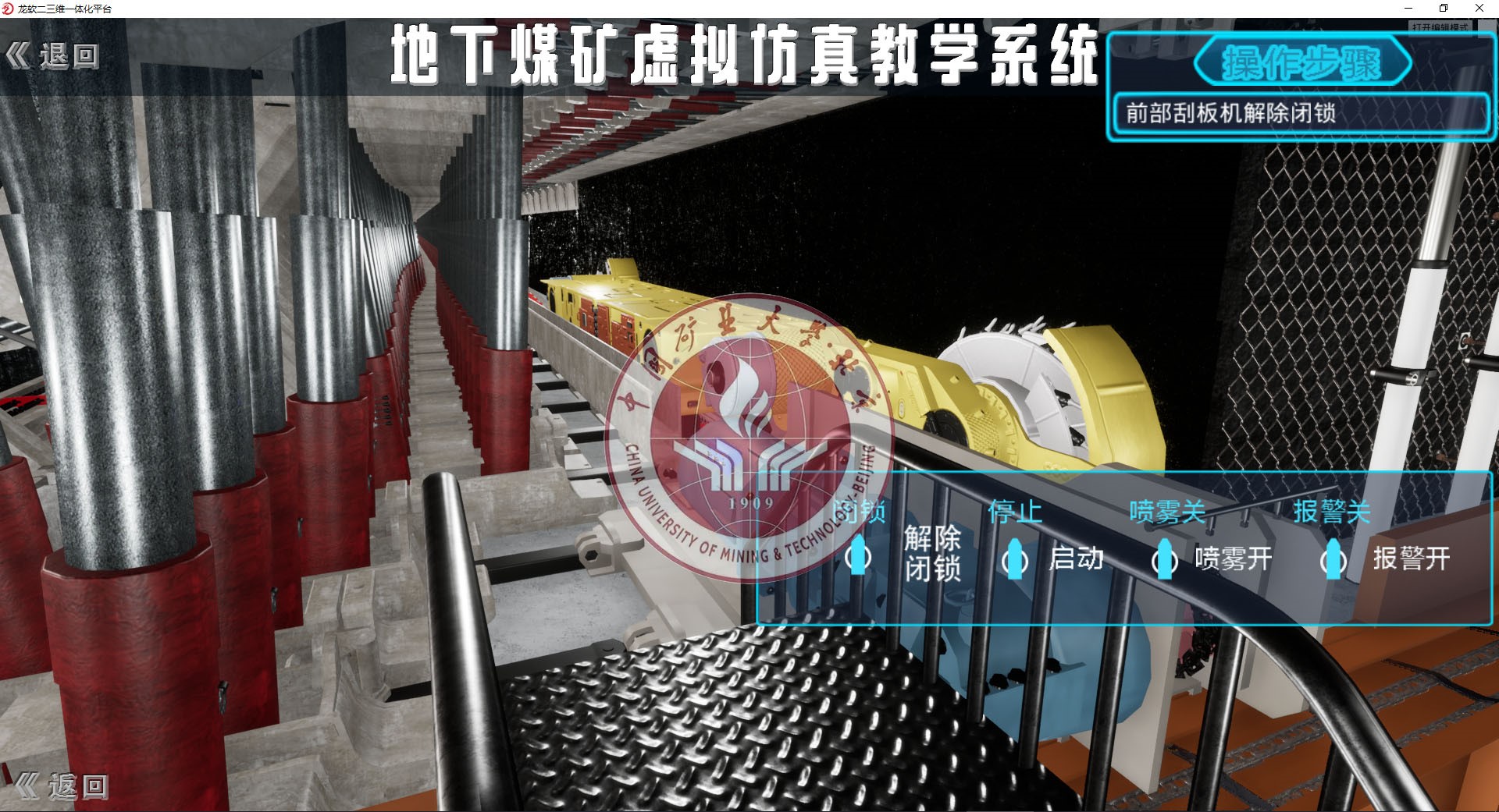 地下煤矿虚拟仿真教学系统-综采仿真工艺流程交互仿真模块