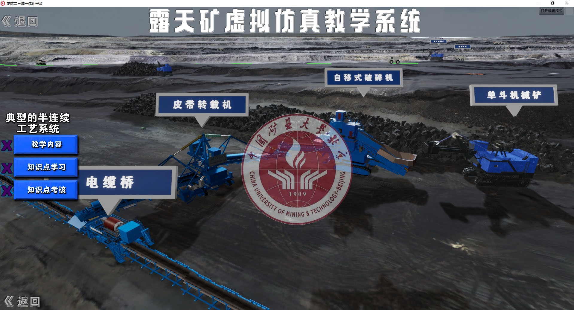 露天矿虚拟仿真教学系统-半连续工艺流程交互仿真模块