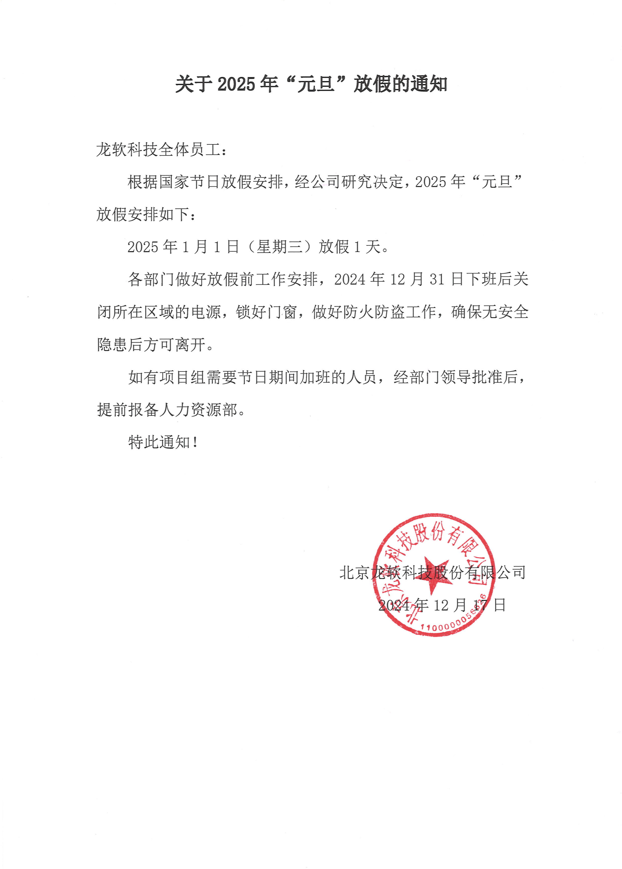 关于2025年“元旦”放假的通知