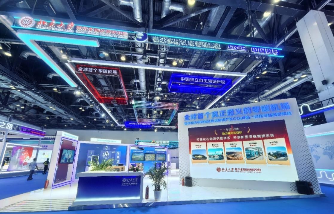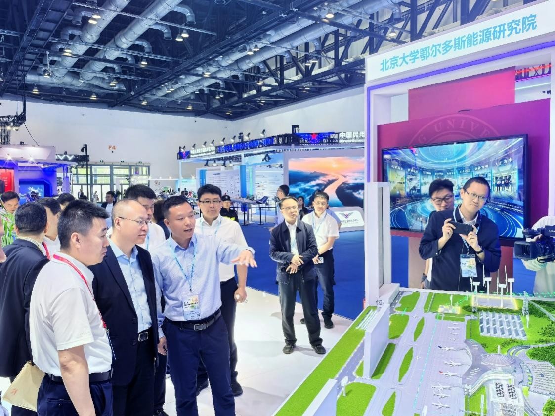5月26日至28日,第三届民航科教创新成果展在北京国家会议中心举办,本次展会以“创新领航,智连世界”为主题,汇聚了民航领域前沿科技成果与创新应用,民航局副局长韩钧出席开幕式并参观展览。展会期间,北京大学鄂尔多斯能源研究院科研成果“鄂尔多斯零碳机场”项目得到高度关注与认可。