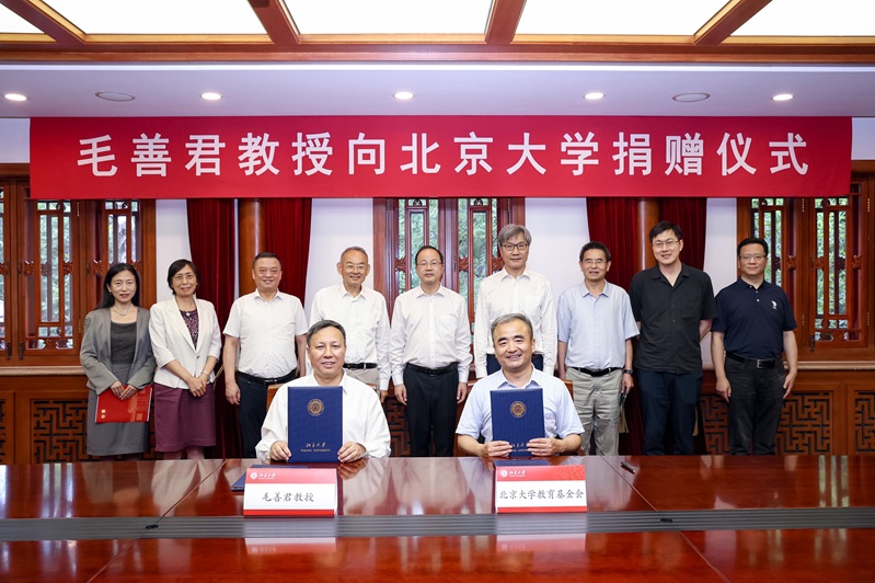 何光彩书记向毛善君董事长颁发了“北京大学杰出教育贡献奖”