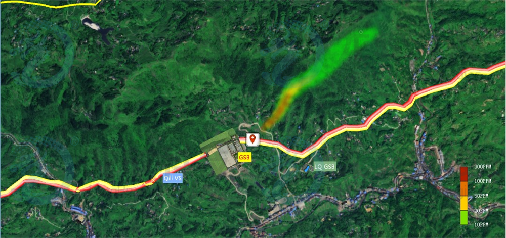 (3)气体泄漏事故智能化推演:建立复杂地形气体扩散模型,根据实时数据计算二维和三维扩散模拟。