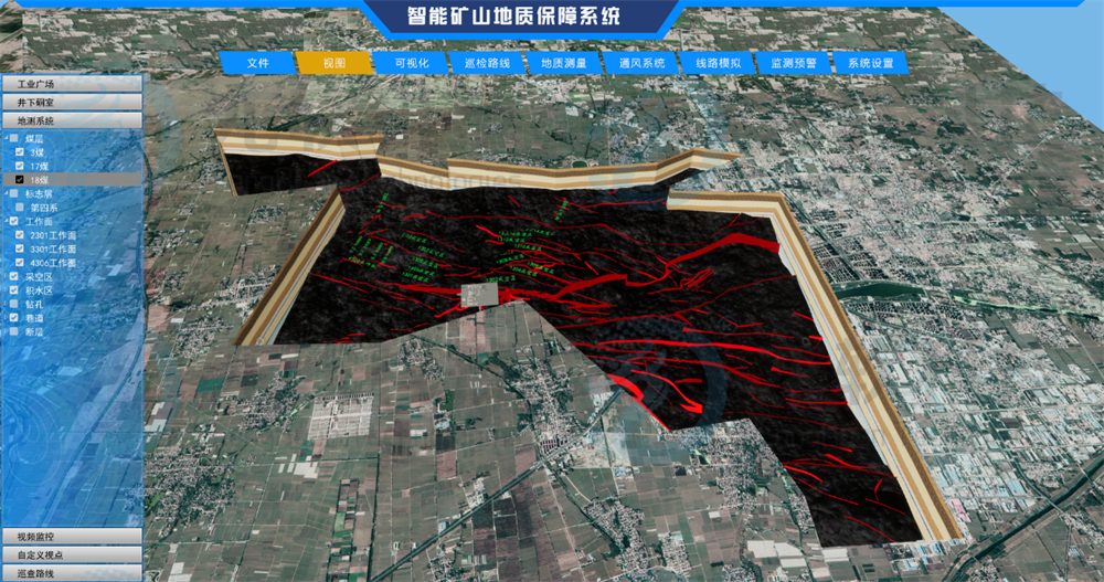 系统按照《煤矿防治水细则》、《煤矿地质工作规定》和《煤矿安全生产标准化管理体系基本要求及评分方法》等对煤矿地测防治水信息化的相关规定,以及国家发展改革委等八部委联合下发的《关于加快煤矿智能化发展的指导意见》、中国煤炭学会标准《智能化煤矿(井工)分类、分级技术条件与评价》(T/CCS 01- 2020)对智能地质保障的要求,为安全生产、地质灾害预警、智能开采、智能掘进、智能管控等提供高精度三维地质模型和业务数据的集成与应用服务为目标,采用云计算、协同TGIS、虚拟现实、移动互联网、大数据分析等先进技术,基于一张图管理理念,开展高精度地质探测、物探数据再解释、多源地质数据融合等,建立地质信息数据库,形成煤矿专业地理信息系统平台、地质一张图Web协同平台、高精度透明地质保障平台、地质大数据分析与隐蔽致灾预警报警分析和预警平台,形成面向云计算和大数据的智能矿山透明地质保障系统。