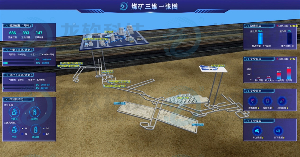 (2)集成安全监测、人员定位、自动化、工业视频等数据,支持数据驱动更新场景,动态自动更新场景,确保三维场景和井下工况一致。