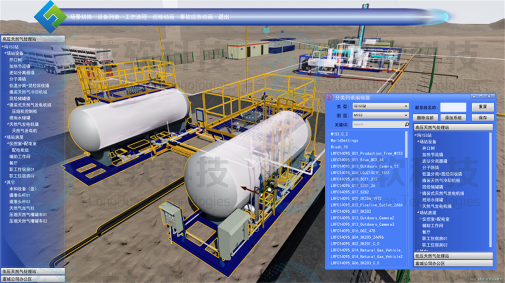 (5)基于自主研发的三维引擎实现工业园区的三维可视化、工艺流程展示、实时数据接入、突发事故模拟和应急演练。