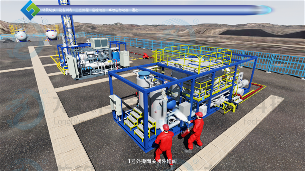 (6)在三维场景中进行日常生产调度、安全巡检、应急指挥,支持油气泄漏、气体扩散、火灾、爆炸等事故类型的模拟演练场景设定和三维灾害场景的快速搭建,实现多角色交互式协同应急救援演练。